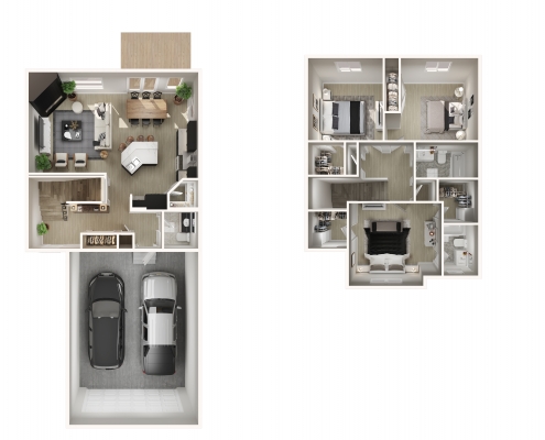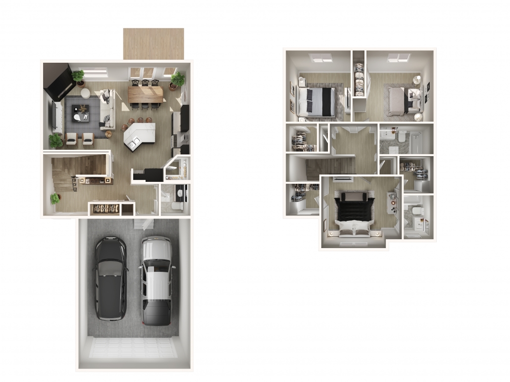 The Anima Model features a spacious main floor with a convenient mudroom off of your oversized double garage. There is an open concept kitchen, corner pantry, and a large island with quartz countertops. You will find 2 bedrooms with a full bathroom, and a master bedroom with walk in closet and en-suite located on the second floor. All appliances are included (including washer and dryer). Laundry included on the second floor.