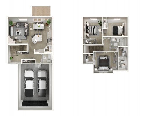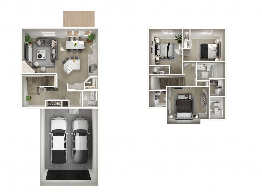 The Mya model has a comfortable main floor with an open concept kitchen and large corner pantry. It also includes 2 full bedrooms, full bathroom and a master bedroom with his and her walk in closets and ensuite on the second floor. All appliances are included (with washer and dryer). There is also an oversized double garage attached.